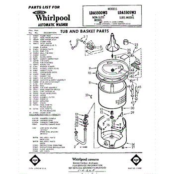 Parts for Whirlpool LDA5500W3: 01 - Tub And Basket , Lit / Optional Parts