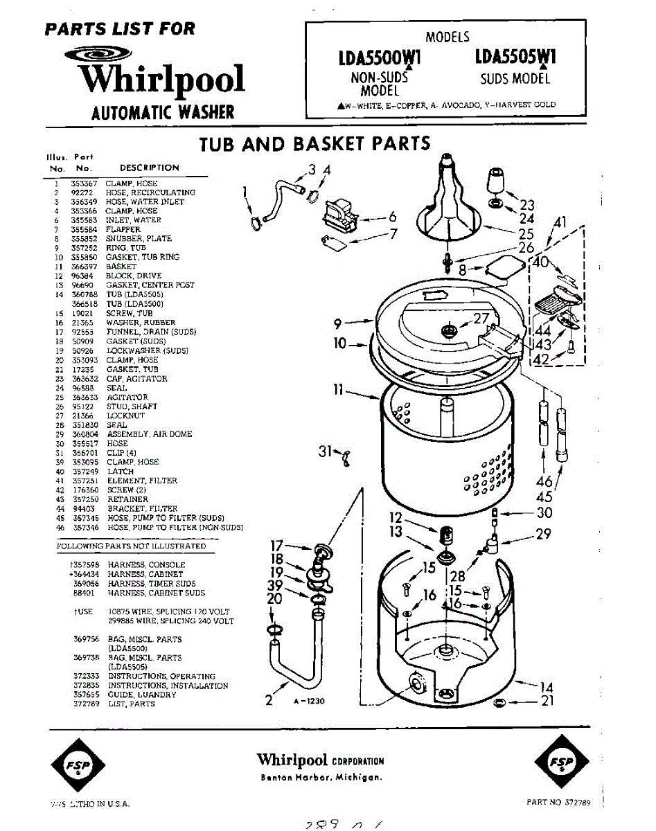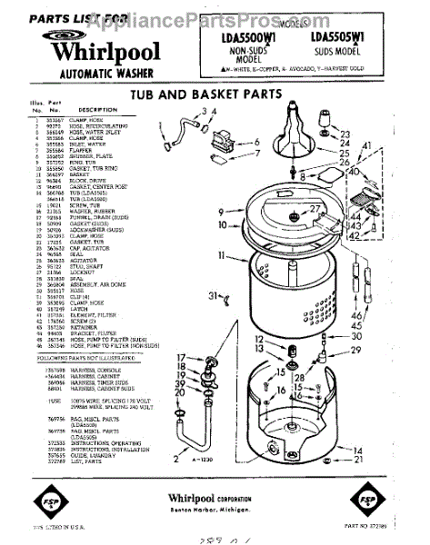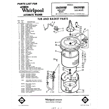 Parts for Whirlpool LDA5505W1: 01 - Tub And Basket , Lit / Optional Parts