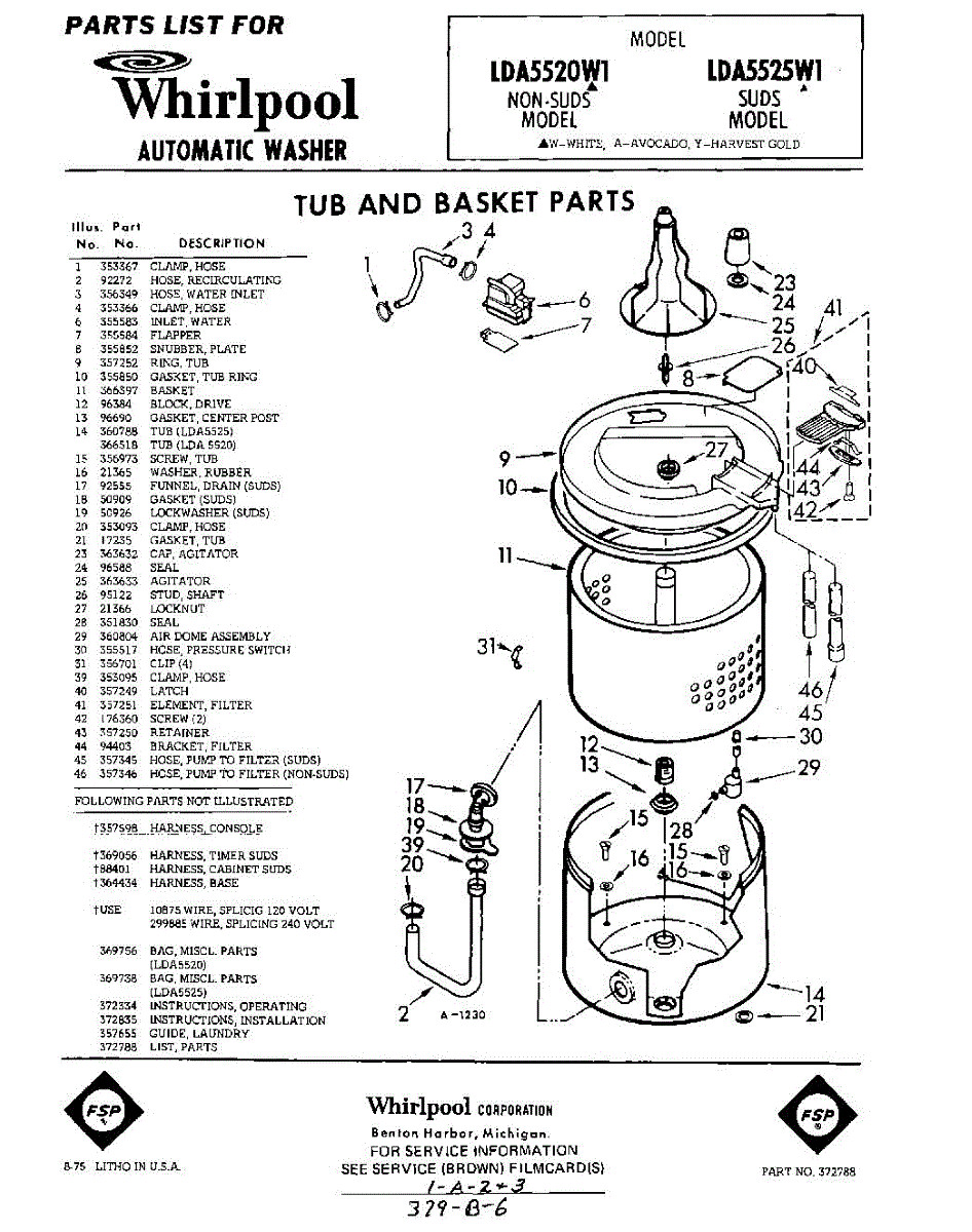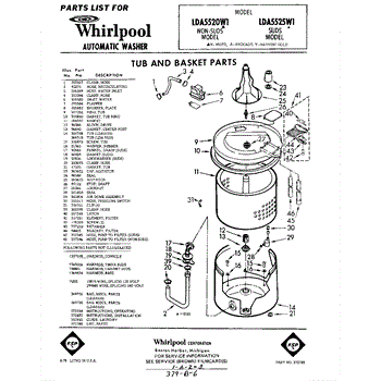 Parts for Whirlpool LDA5520W1: 01 - Tub And Basket , Lit / Optional Parts