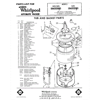 Parts for Whirlpool LDA5520W3: 01 - Tub And Basket , Lit / Optional Parts