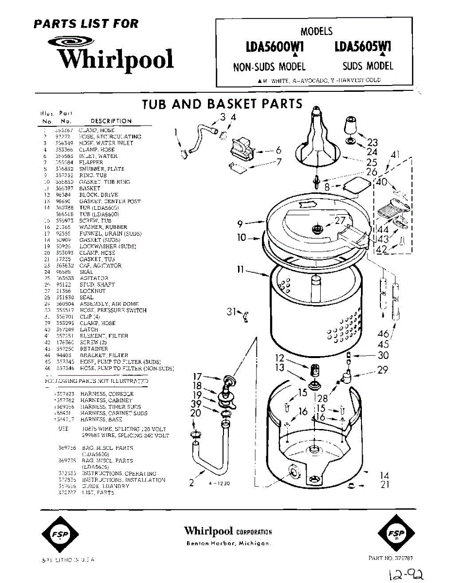 Parts for Whirlpool LDA5600W1: 01 - Tub And Basket, Lit / Optional Parts