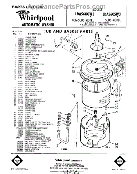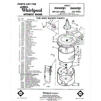 Parts for Whirlpool LDA5600W3: 01 - Tub And Basket , Lit / Optional Parts