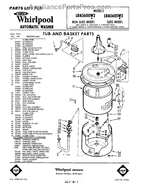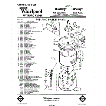 Parts for Whirlpool LDA5605W2: 01 - Tub And Basket , Lit / Optional Parts