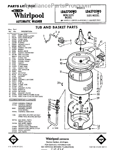 Parts for Whirlpool LDA5700W0: 01 - Tub And Basket , Lit / Optional Parts