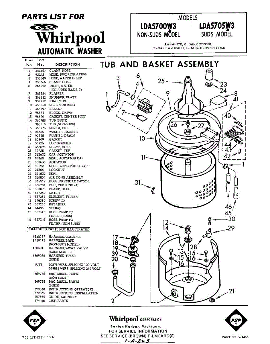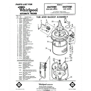 Parts for Whirlpool LDA5700W3: 01 - Tub And Basket , Lit / Optional Parts
