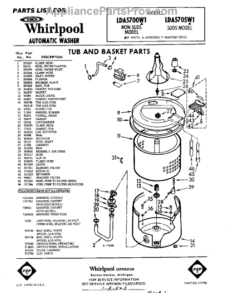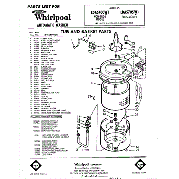 Parts for Whirlpool LDA5705W1: 01 - Tub And Basket , Lit / Optional Parts