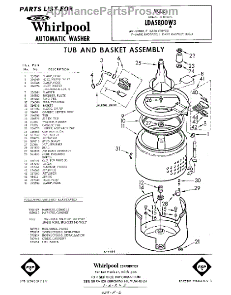 Parts for Whirlpool LDA5800W3: 01 - Tub And Basket , Lit / Optional Parts