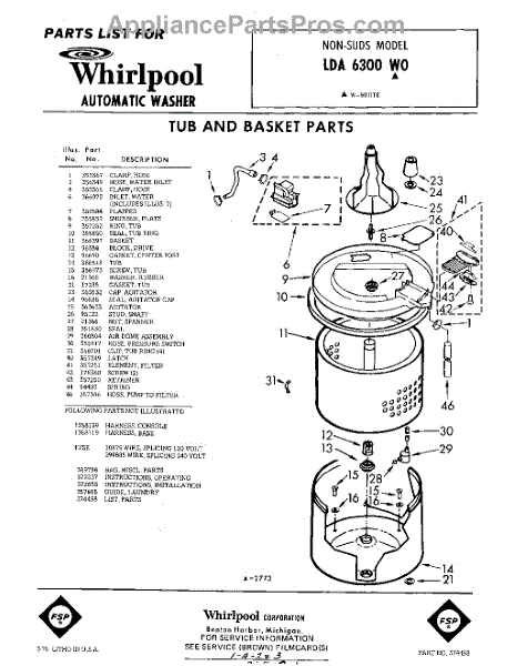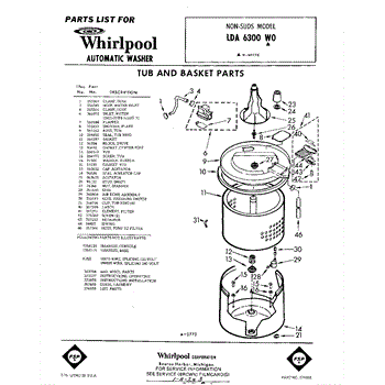 Parts for Whirlpool LDA6300W0: 01 - Tub And Basket , Lit / Optional Parts