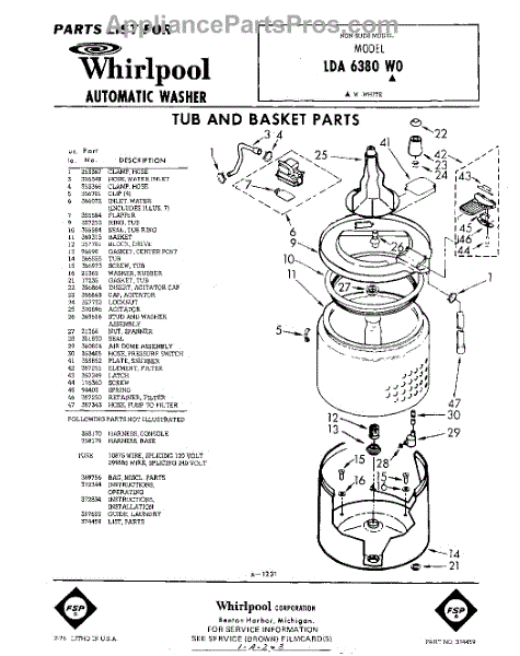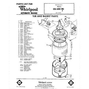 Parts for Whirlpool LDA6380W0: 01 - Tub And Basket , Lit / Optional Parts