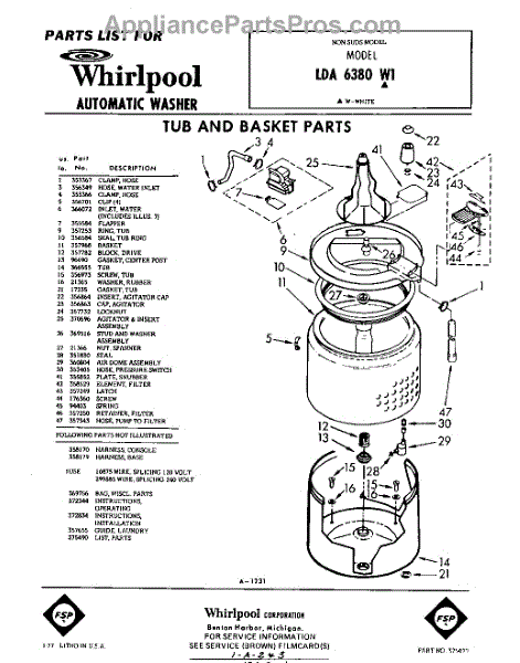 Parts for Whirlpool LDA6380W1: 01 - Tub And Basket , Lit / Optional Parts