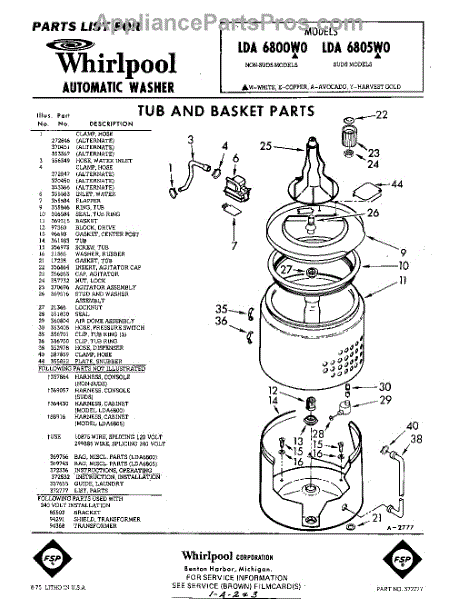Parts for Whirlpool LDA6800W0: 01 - Tub And Basket , Lit / Optional Parts