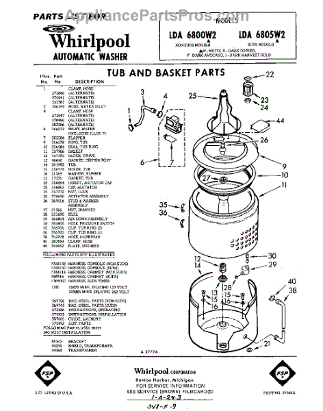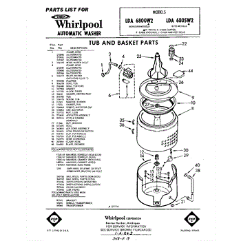 Parts for Whirlpool LDA6800W2: 01 - Tub And Basket , Lit / Optional Parts