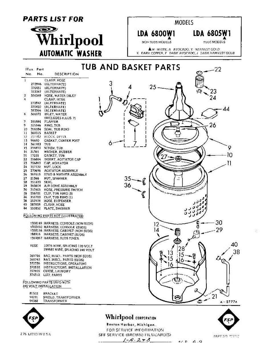 Parts for Whirlpool LDA6805W1: 01 - Tub And Basket , Lit / Optional Parts
