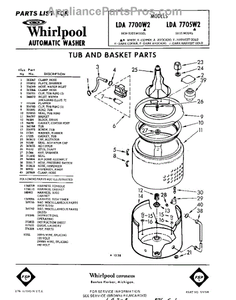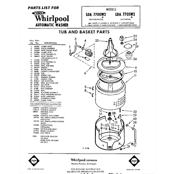 Parts for Whirlpool LDA7705W2: 01 - Tub And Basket , Lit / Optional Parts