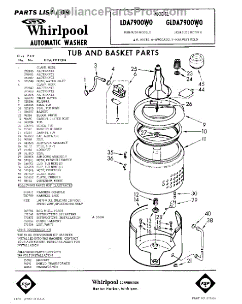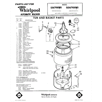 Parts for Whirlpool LDA7900W0: 01 - Tub And Basket , Lit / Optional Parts