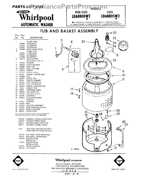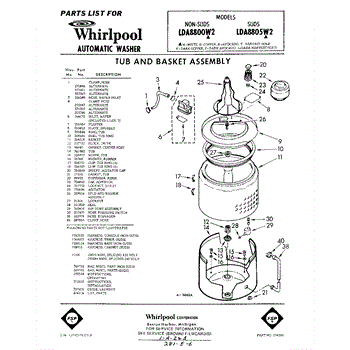 Parts for Whirlpool LDA8800W2: 01 - Tub And Basket , Lit / Optional Parts