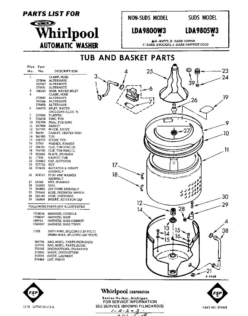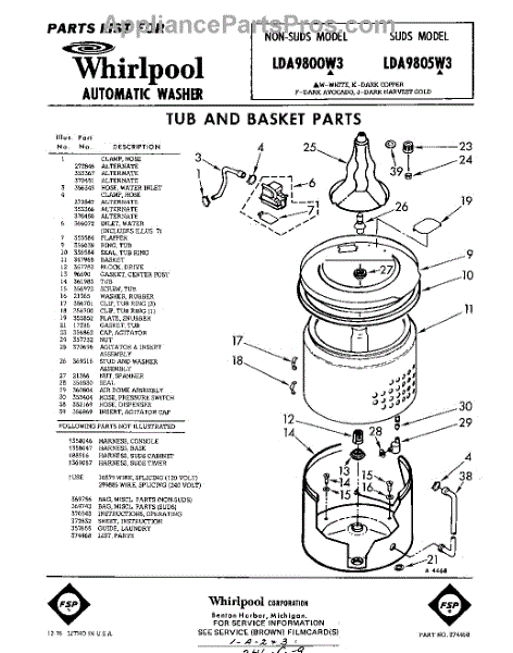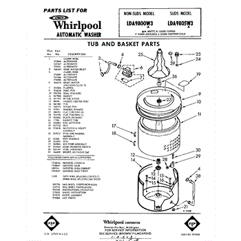 Parts for Whirlpool LDA9800W3: 01 - Tub And Basket , Lit / Optional Parts