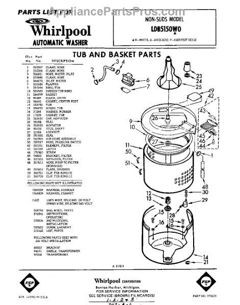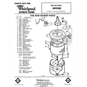 Parts for Whirlpool LDB5150W0: 01 - Tub And Basket , Lit / Optional Parts