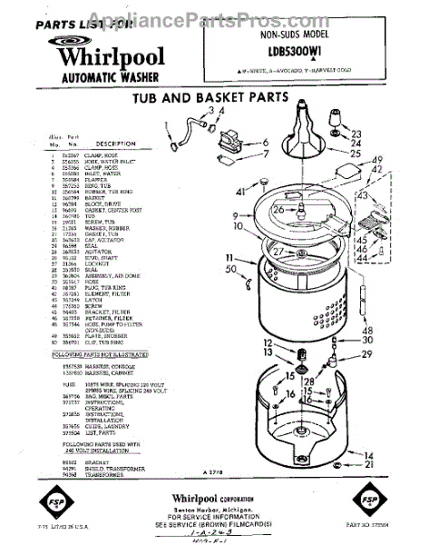 Parts for Whirlpool LDB5300W1: 01 - Tub And Basket , Lit / Optional Parts