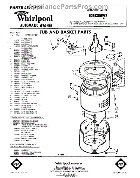 Parts for Whirlpool LDB5300W2: 01 - Tub And Basket , Lit / Optional Parts