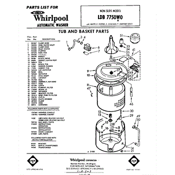 Parts for Whirlpool LDB7750W0: 01 - Tub And Basket , Lit / Optional Parts