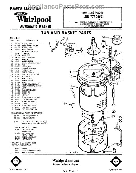 Parts for Whirlpool LDB7750W2: 01 - Tub And Basket , Lit / Optional Parts