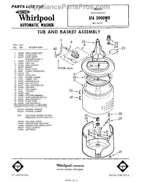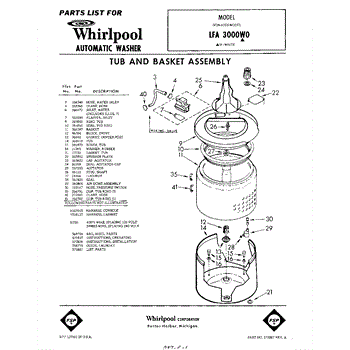 Parts for Whirlpool LFA3000W0: 01 - Tub And Basket , Lit / Optional Parts