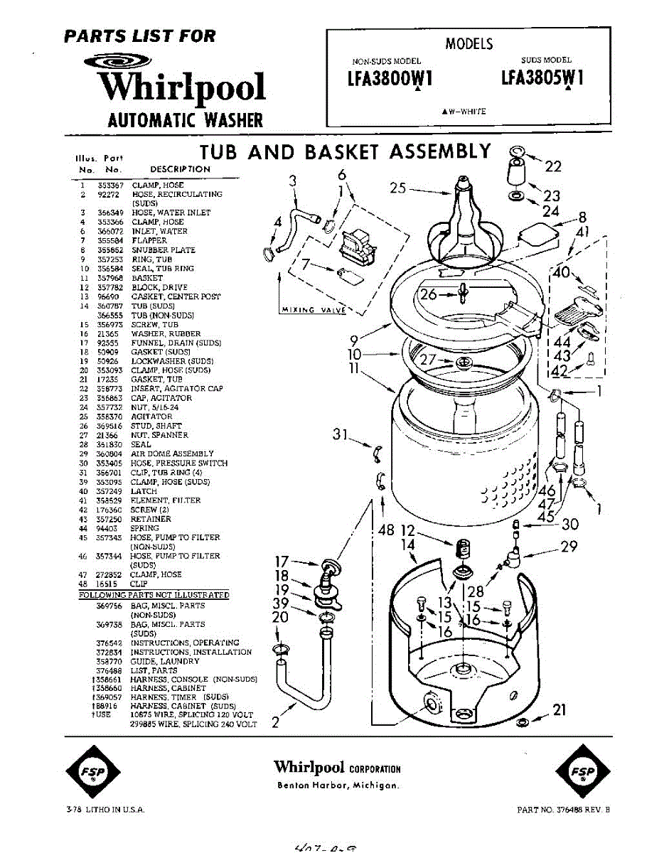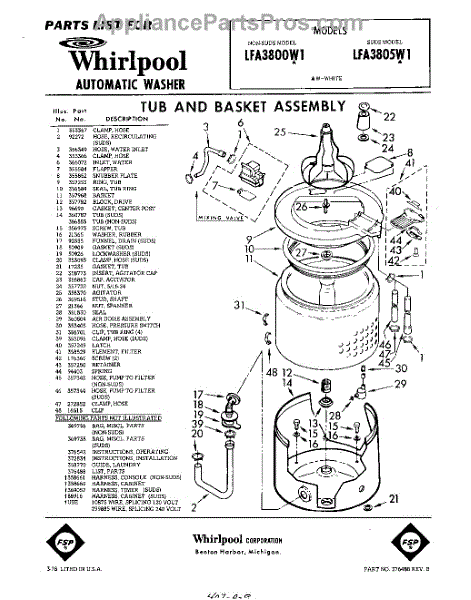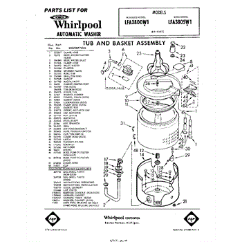 Parts for Whirlpool LFA3805W1: 01 - Tub And Basket , Lit / Optional Parts