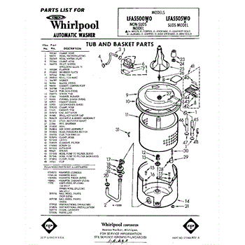 Parts for Whirlpool LFA5500W0: 01 - Tub And Basket , Lit / Optional Parts
