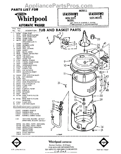 Parts for Whirlpool LFA5505W2: 01 - Tub And Basket , Lit / Optional Parts