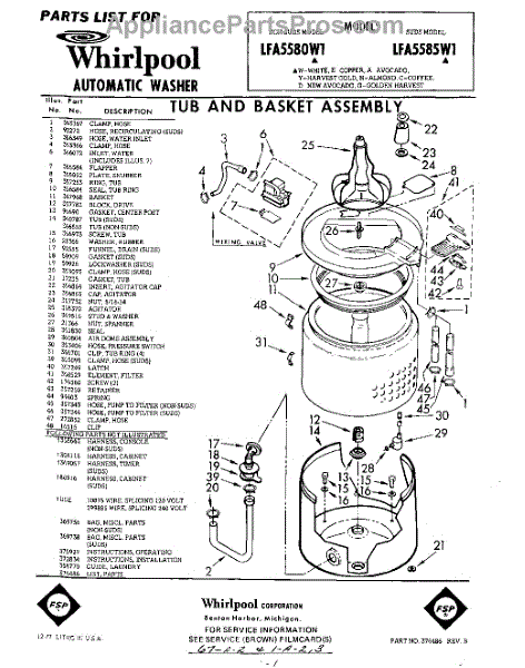 Parts for Whirlpool LFA5580W1: 01 - Tub And Basket , Lit / Optional Parts