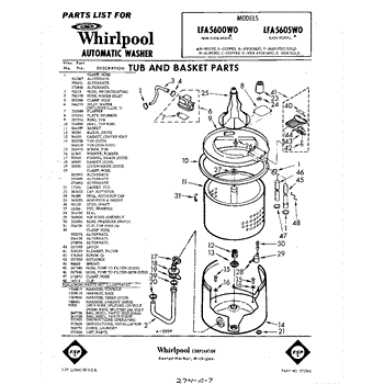Parts for Whirlpool LFA5600W0: 01 - Tub And Basket, Lit / Optional Parts