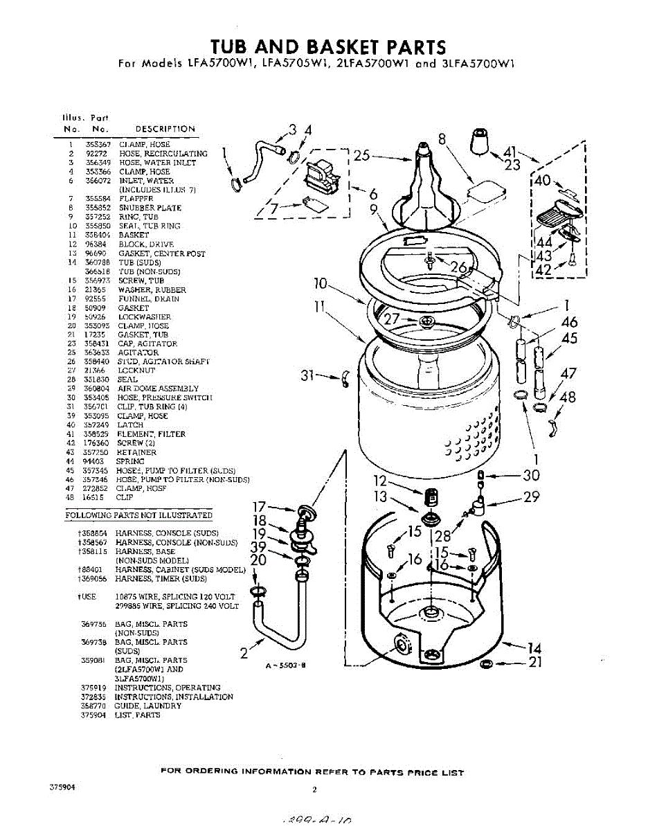 Parts for Whirlpool LFA5700W1: 02 - Tub And Basket , Lit / Optional Parts