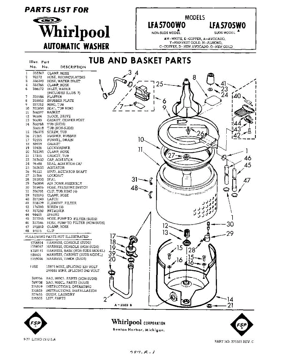Parts for Whirlpool LFA5705W0: 01 - Tub And Basket , Lit / Optional Parts