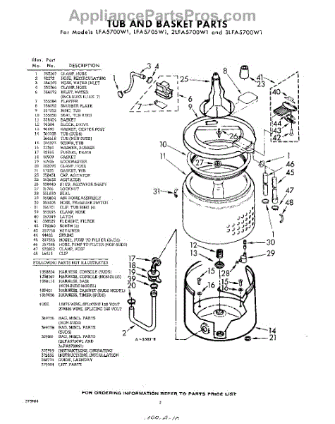 Parts for Whirlpool LFA5705W1: 02 - Tub And Basket , Lit / Optional Parts