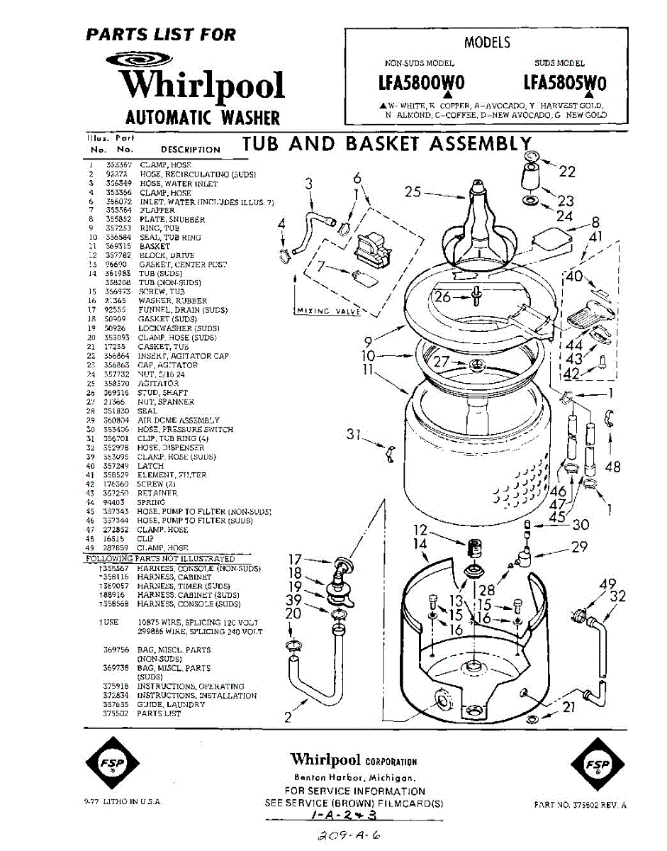 Parts for Whirlpool LFA5800W0: 01 - Tub And Basket , Lit / Optional Parts
