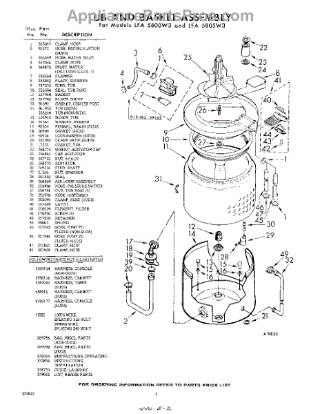 Parts for Whirlpool LFA5800W3: 02 - Tub And Basket , Lit / Optional Parts