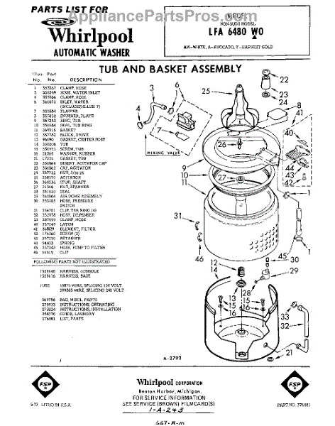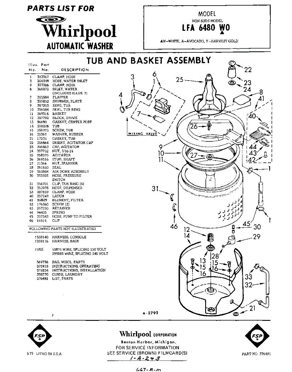Parts for Whirlpool LFA6480W0: 01 - Tub And Basket , Lit / Optional Parts