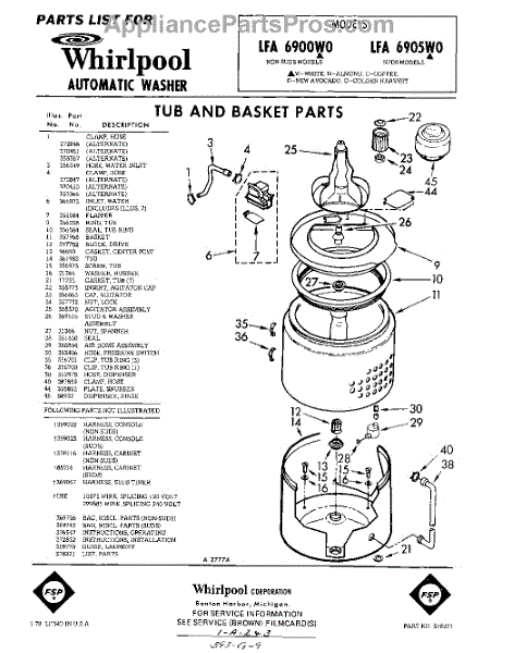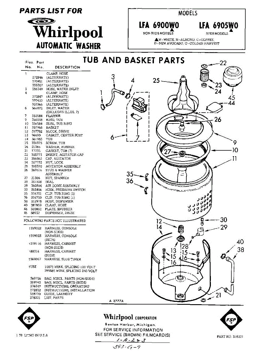 Parts for Whirlpool LFA6905W0: 01 - Tub And Basket , Lit / Optional Parts