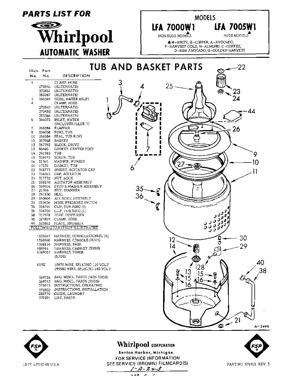 Parts for Whirlpool LFA7000W1: 01 - Tub And Basket , Lit / Optional Parts