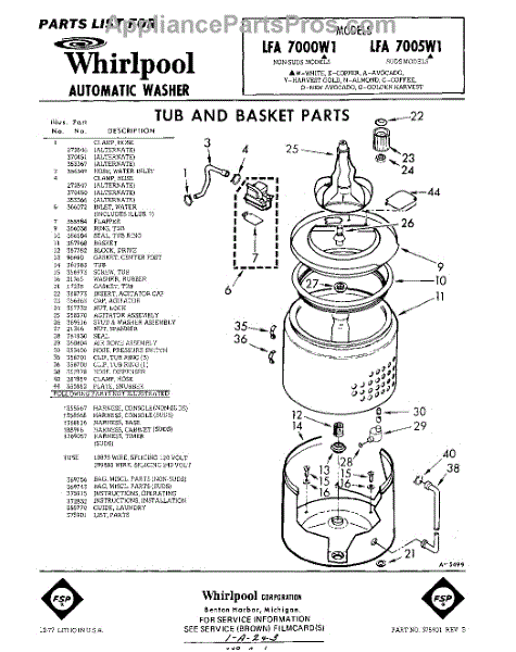 Parts for Whirlpool LFA7005W1: 01 - Tub And Basket , Lit / Optional Parts