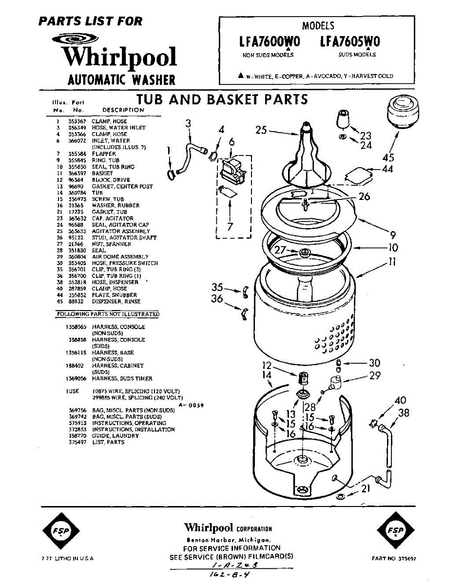 Parts for Whirlpool LFA7605W0: 01 - Tub And Basket , Lit / Optional Parts