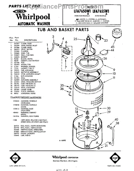 Parts for Whirlpool LFA7650W1: 01 - Tub And Basket , Lit / Optional Parts