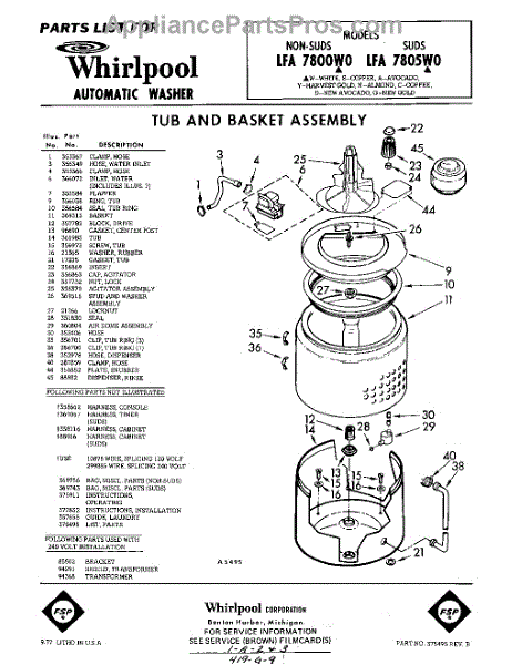 Parts for Whirlpool LFA7800W0: 01 - Tub And Basket , Lit / Optional Parts