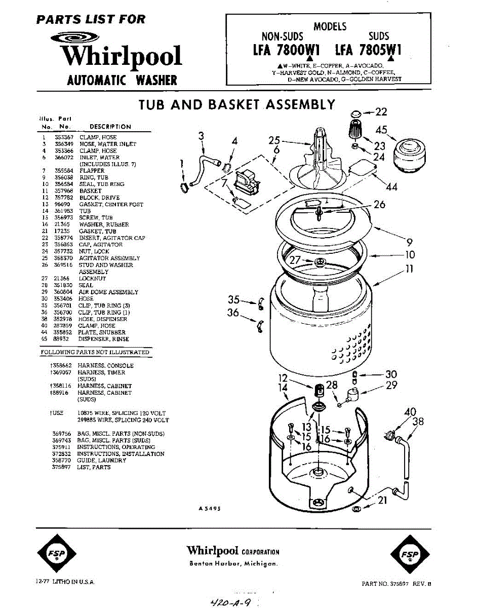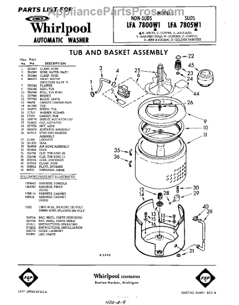 Parts for Whirlpool LFA7800W1: 01 - Tub And Basket , Lit / Optional Parts