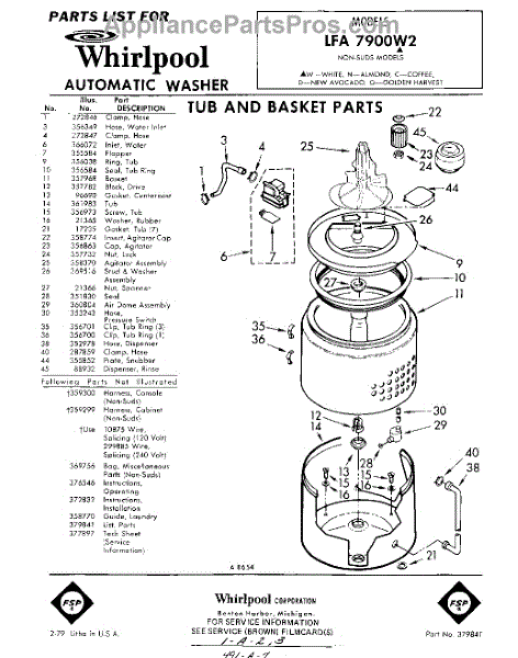 Parts for Whirlpool LFA7900W2: 01 - Tub And Basket , Lit / Optional Parts