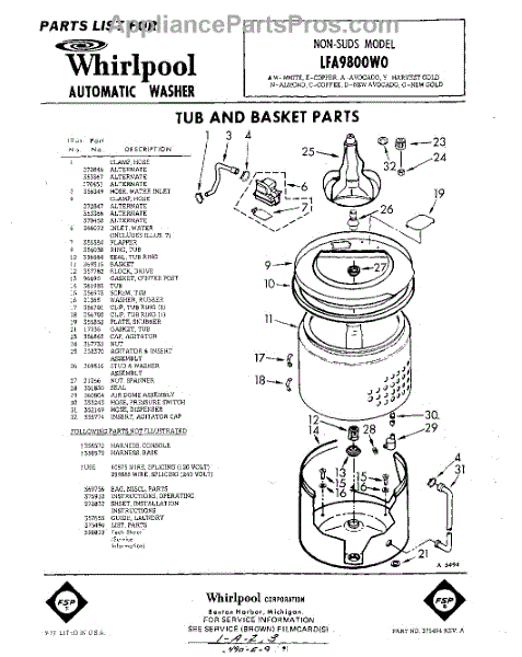 Parts for Whirlpool LFA9800W0: 01 - Tub And Basket , Lit / Optional Parts