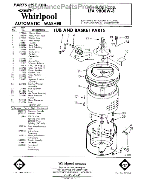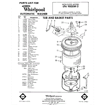 Parts for Whirlpool LFA9800W3: 01 - Tub And Basket , Lit / Optional Parts