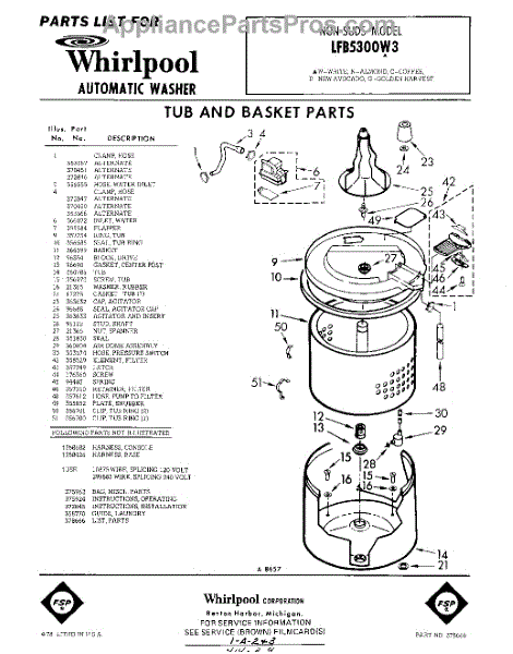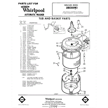 Parts for Whirlpool LFB5300W3: 01 - Tub And Basket , Lit / Optional Parts