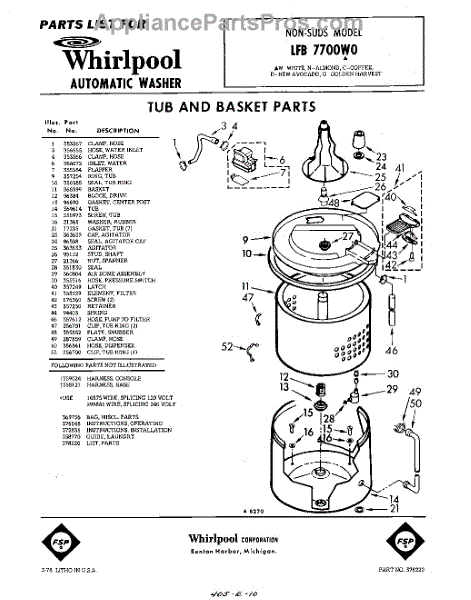 Parts for Whirlpool LFB7700W0: 01 - Tub And Basket , Lit / Optional Parts